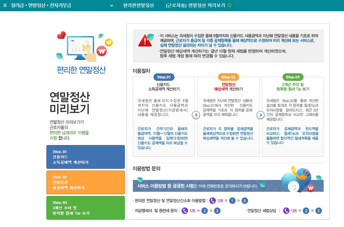 국세청 홈택스에서는 현재 '연말정산 미리 보기' 서비스를 제공하고 있다.